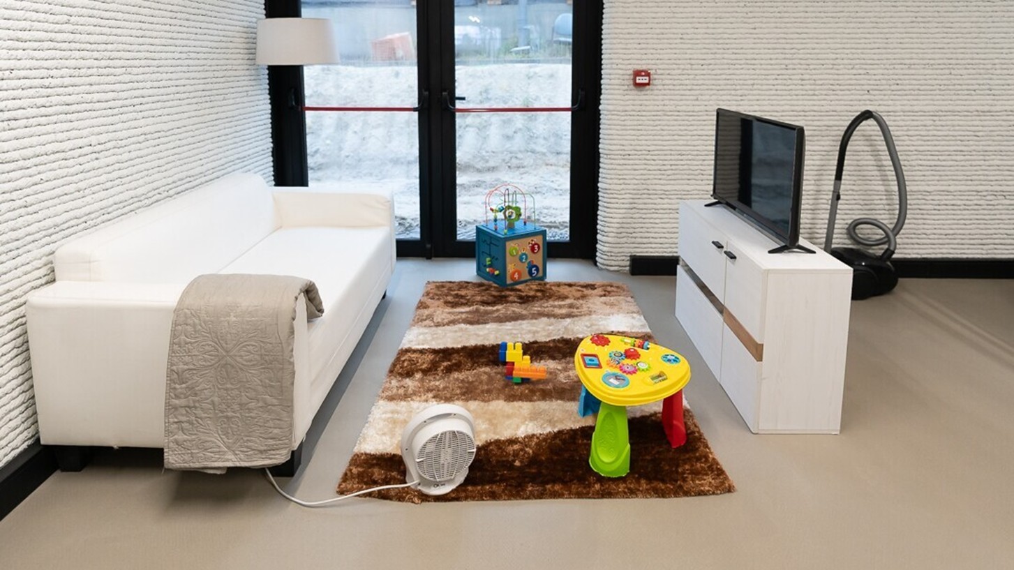Figura 1. Fase de construção do ReCircular LAB, na qual foi aplicada tecnologia inovadora de impressão 3D com recurso a materiais reciclados, permitindo reduzir desperdícios, diminuir o impacte ambiental da obra e testar soluções construtivas mais sustentáveis.