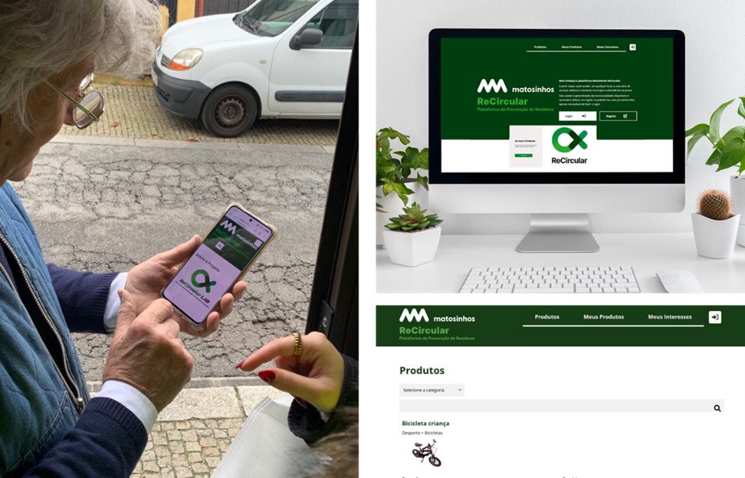 A Plataforma ReCircular complementa o trabalho do laboratório físico através de um sistema de partilha e reutilização completamente digital, disponível em https://recircular.cm-ma tosinhos.pt. Nesta plataforma, qualquer munícipe pode disponibilizar bens que já não utiliza e solicitar produtos partilhados por outros residentes, evitando aquisições desnecessárias e promovendo o prolongamento do ciclo de vida dos materiais.